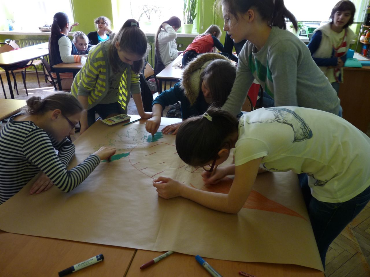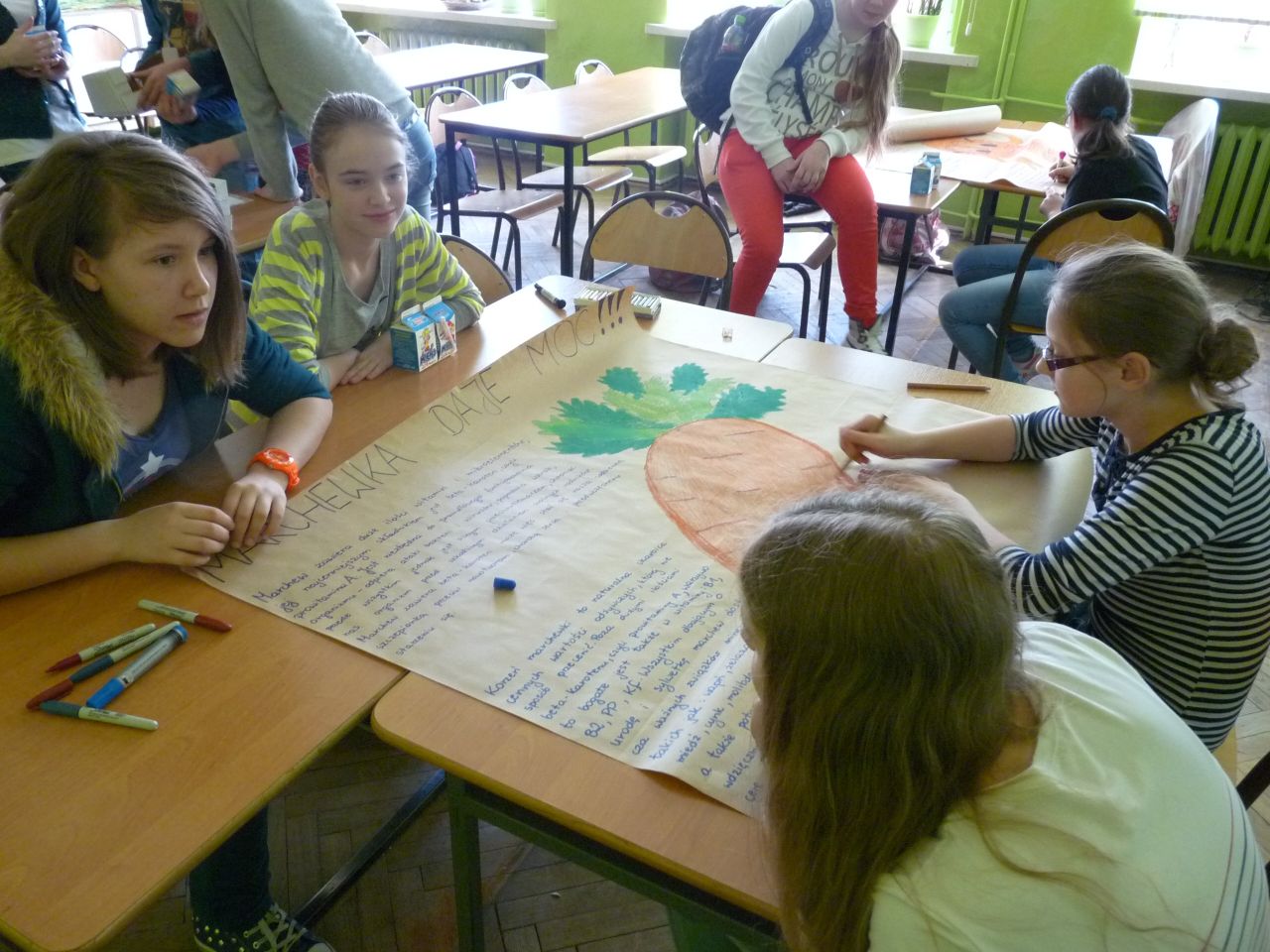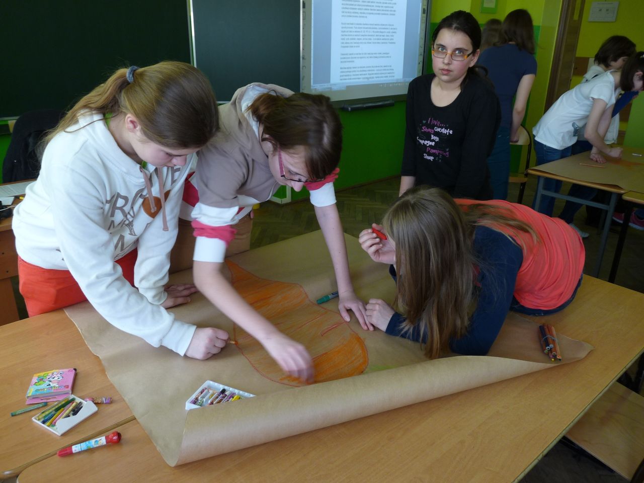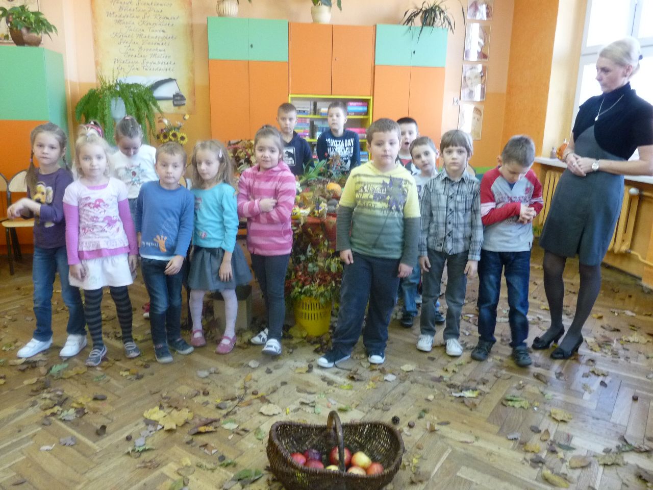 26 października odbyła się nietypowa lekcja języka polskiego na temat „Jesień w naszej klasie”. Sala 407 przypominała jesienny krajobraz. Nie było jak zawsze ławek, było za to mnóstwo darów sadu, ogrodu i lasu. Lekcja ta była podsumowaniem projektu, który trwał 3 tygodnie. W ciągu tego okresu uczniowie klas IV przygotowywali się do jego realizacji. Zadania były związane z jesienią, a w tym: