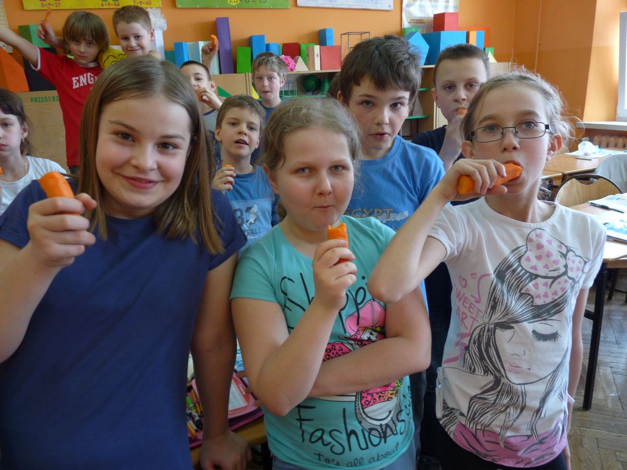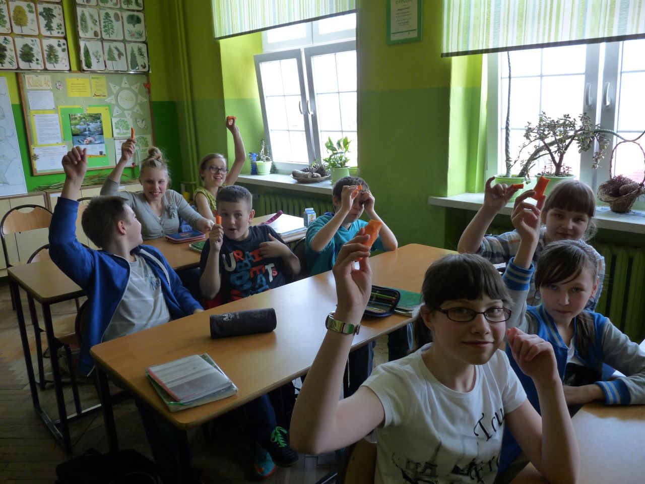 Wiedzę o zdrowym odżywianiu dzieci zdobywały, rozwiązując zagadki, krzyżówkę, użyły też warzyw do zabawy i przedstawienia kukiełkowego. Europejski Dzień Zdrowego Jedzenia to znakomity przykład budowania świadomości zjadania w szkole II śniadania, które daje energię do nauki.